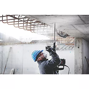 Lasts up to 3x longer than a standard drill bit. Full carbide head is an advanced 4-cutter design made from a single piece of the toughest metal preventing jamming and no weakness on impact. Punches through rebar effectively with no need to stop, re-target or change bits when striking steel. For construction professionals drilling concrete and reinforced concrete regularly including heavy-duty anchors or rebar extensions.