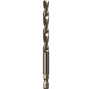 Robust HSS Cobalt pilot drill with large diameter for greater durability. Reinforced shank and close-fitting guide drill produce less play than conventional systems. Suitable for drilling centre holes in preparation for stable work with hole saws. Tip design offers high speed, long lifetime and improved guidance when drilling, for more accurate results. Ideal for use with metal and stainless steel. For use in conjunction with the Bosch Powerchange Plus keyless arbor (sold separately).