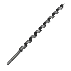 For large diameter drilling in wood, corkscrew design pulls bit through the wood.