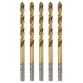 Industrial quality drill bits for metal. Manufactured from high quality, high speed steel and hardened for superb strength. Fully ground for fast waste removal. TiN coated for even longer life. 135° split tip for accuracy.