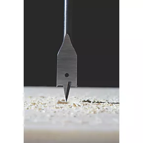 ¼” Hex Shank. Good quality flat bits. 3-point cutting head for clean, large diameter drilling in wood. Angled cutting edges give faster, cleaner cutting. Use with hand or power tools.
