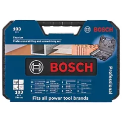 Includes PZ and Phillips screwdriver bits, masonry HSS and wood drill bits, hex keys, spirit level, knife, tape measure and adjustable spanner.