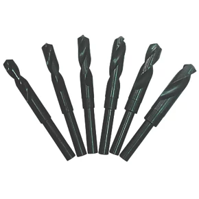 Large diameter bits with smaller shanks to enable use in standard drill chucks. Suitable for steel, cast iron, malleable iron, non-ferrous materials and plastics.